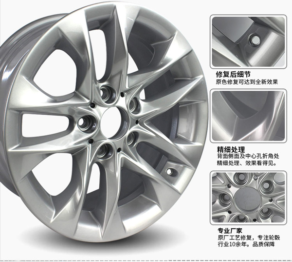 烤漆轮毂是一种常见的轮毂表面工艺,北京闽源采用“三喷三烤”的技术进行烤漆轮毂原厂工艺修复。即喷粉技术进行打底,油漆经过高温烘烤的三重工序。修复过后的轮毂耐用性强,不会出现脱漆的现象。同时,北京闽源可根据客户个性化需求,提供轮毂改色服务,让您的爱车更加个性化。下面给大家看看我们闽源烤漆轮毂修复效果。