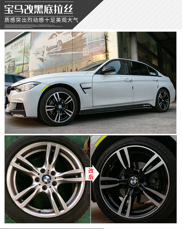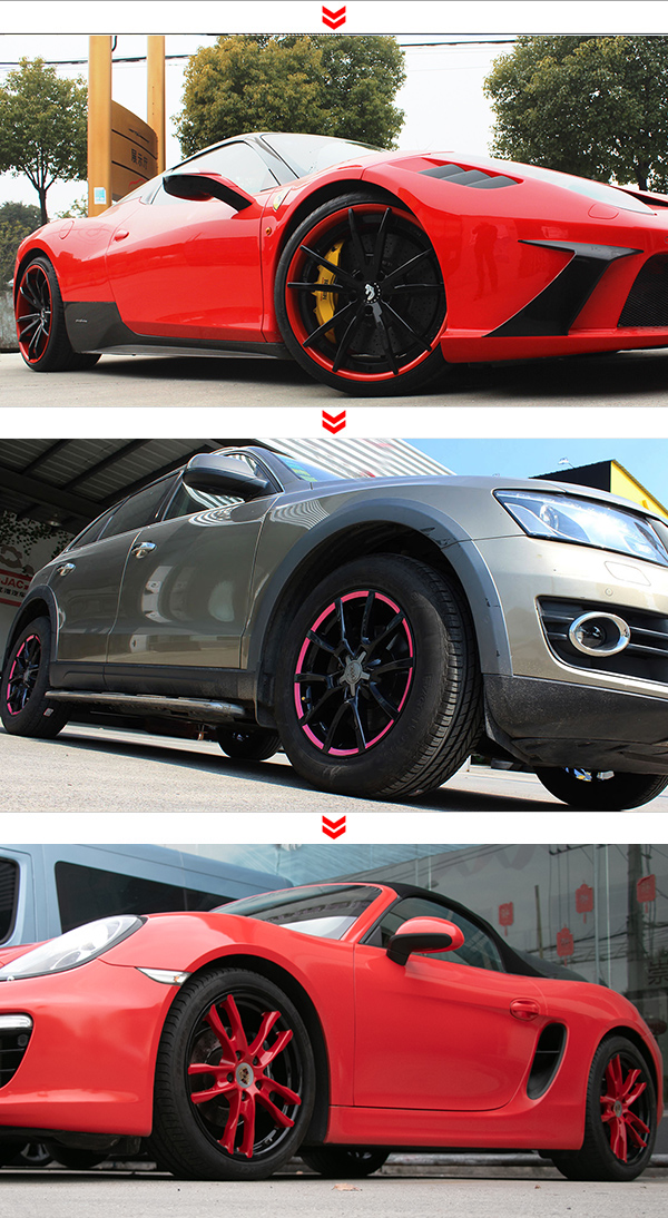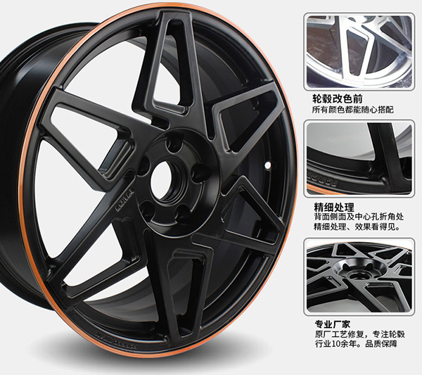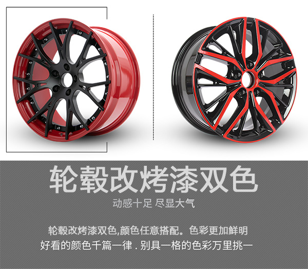 轮毂改双色是建立了在原厂轮毂修复工艺的基础上,轮毂内侧是一种色,轮毂表面是一种色,表面可以做成烤漆的,可以做成拉丝的,也可以做成电镀的。但是不论是轮毂内侧的颜色,还是轮毂表面的颜色均可根据客户自己喜好来定。色彩更加鲜明个性,深受年轻人的喜爱。你的轮毂颜色,你做主。